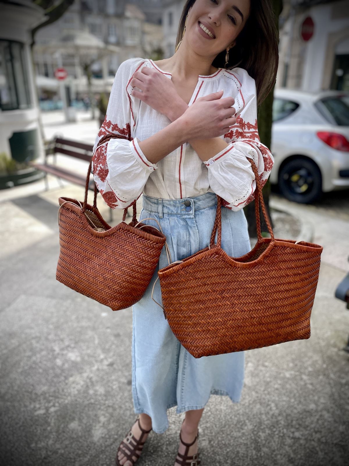 Bolso capazo piel trenzado CAMEL GRANDE