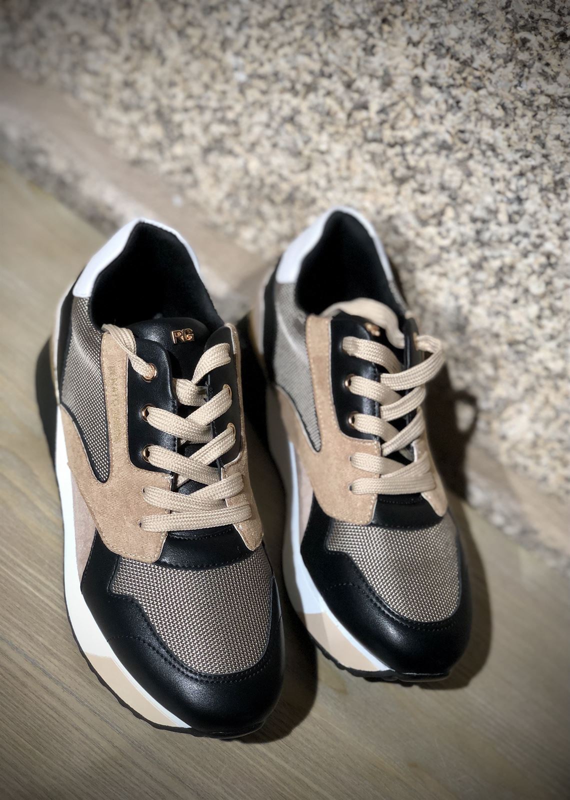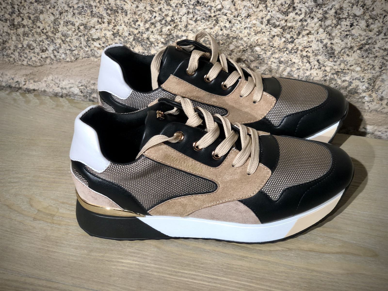 Deportivo en tonos camel con suela bicolor en negro y blanco. Deportivo con suela de 2,5 cm. Planta: textil. Corte y forro: Textil y sintético. Suela: Sintético.