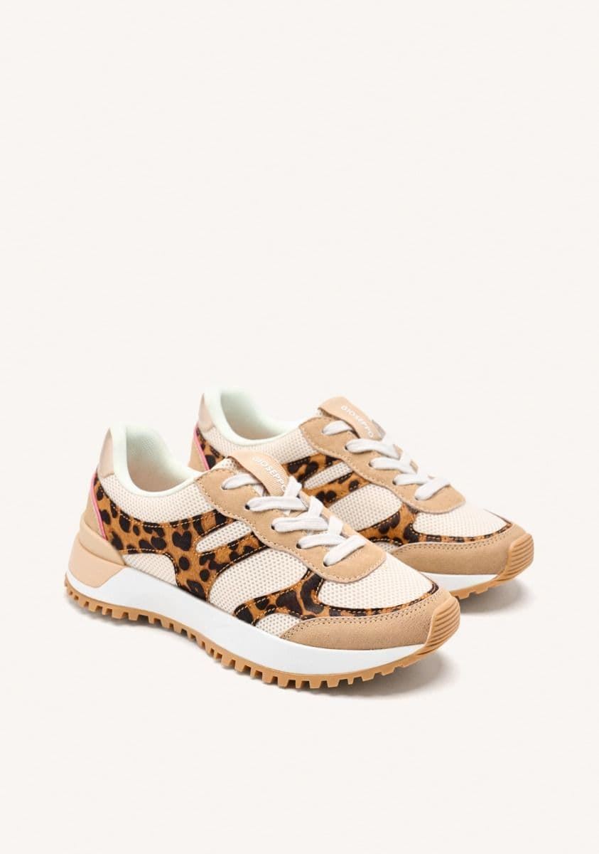Deportivas de estampado animal y beige de la firma GIOSEPPO. Cómodas y originales zapatillas en tejido y piel con plantilla anatómica extraible, de la firma española GIOSEPPO, en animal print y beige.
